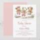 Celebrate the imminent arrival of your bundle of joy by inviting your friends and loved ones to your baby shower with this invitation featuring three adorable teddy bears wearing pink polka dot overalls playing jump rope.. The customizable text allows you to effortlessly add your name, date and time of the celebration, and the RSVP information. A variety of paper types and corner styles are available for your unique invitations, along with the option to download if you prefer a digital format.