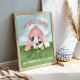 Celebrate your girls birthday with this cute farm animal barnyard invitation featuring a watercolor style pink barn, baby pig, cow, sheep, and chick. Fun and colorful, with “Our little farmer – [Name] is turning [age]!” on the front and classic pink gingham on the back. Perfect for a baby’s first or toddler’s farm birthday party! Customisable to any age.