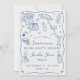 This two-sided bachelorette invitation features a soft white background paired with soft blue accents and playful hand-drawn illustrations, including pajama sets, sleep masks, lipstick, champagne, martinis, pizza, popcorn, bows, cherries, and beauty essentials. The whimsical doodle-style artwork combined with casual handwritten typography creates a fresh, airy look that feels coastal, clean, and beautifully modern.