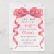 Celebrate a special birthday with an invitation that feels truly magical. This design features a stunning watercolor illustration of a large pink bow with flowing ribbons, painted with soft shading and delicate details that exude elegance and charm. Set against a light pink background, subtle sparkle effects add a dreamy, artistic touch that instantly captures attention.