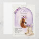 This girls purple floral horse birthday invitation features a soft watercolor pony with lavender flowers and greenery. Designed for a pony birthday party or cowgirl party theme, this elegant yet playful invitation is perfect for young horse lovers celebrating ages 6, 7, or 8. The refined floral details and gentle horse portrait create a charming horse-themed birthday invitation that pairs beautifully with matching party decorations, supplies, and personalized gifts.