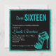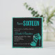 Invitación Glam Aqua Purpurina de alto talón dulce dieciséis
