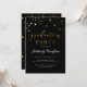 Invitaciones a la fiesta de graduación de Glam que incluyen confetti de la estrella del Relieve metalizado de oro falso y tipografía moderna sobre un fondo negro. "Partido de Graduación" se muestra en una combinación de caligrafía de moda y fuente serif. Esta invitación se revierte a un fondo negro con un patrón estrella de oro. Puede personalizar fácilmente el color de fondo para adaptarlo a sus necesidades.