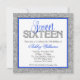 Invitación Glam Faux Purpurina Silver Blue Sweet 16