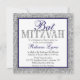 Invitación Glam Faux Purpurina Silver Nave Blue Bat Mitzvah