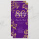 Invitación Glam Floral 80th Birthday Program Gold Purple Menu