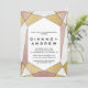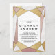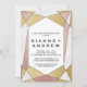 Esta tarjeta de invitación al brunch con boda de diamantes geométrico de cristal es perfecta para un evento moderno. El diseño presenta un patrón geométrico hexagonal con purpurina de oro falso, Relieve metalizado de oro rosa falso y textura de mármol falso que decora los espacios del patrón. Hay que destacar que este diseño no tiene purpurina de oro, Relieve metalizado de oro rosa ni mármol. Es un gráfico de alta calidad hecho como oro, Relieve metalizado de oro rosa y mármol.