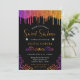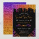 Invitación Glam Morado y Naranja Gradiente Purpurina Dulce 16
