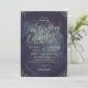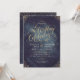 Glamour dorado con letras caligrafía boda diseño de celebración y puntos dorados confetti en el fondo de la acuarela del cielo marino oscuro, efecto purpurina de oro fino, moderno, moda, elegante y elegante, perfecto para bodas vintage o bodas de invierno por la noche. Personalizar tu propia tarjeta de invitación a la boda. Vea todas las piezas que coinciden en esta colección de caligrafía de purpurina dorado Glam night a continuación.
