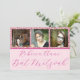 Invitación Glam Pink Elegant Script 3 Photo Bat Mitzvah
