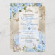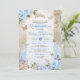 Invitación Glam Princess Blue Gold Rose Butterfly Quinceanera