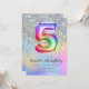 Glam Holographic Purpurina Arcoiris Relieve metalizado Pastel Chica de globo 5º cumpleaños Invitación