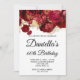Crea tu propia y elegante invitación para celebrar tu cumpleaños número 60 para tu amigo. El Relieve metalizado de imitación de oro adorna la decoración romántica de la decoración floral rojiza vintage. Personalizar el color de fondo blanco de invitación, así como el color de texto de los estilos de fuente modernos. Las hojas de Relieve metalizado de lujo han sido creadas con elementos artísticos digitales que se imprimen como una foto.