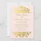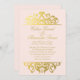 Esta elegante y majestuosa Invitación a la Boda presenta un Relieve metalizado falso dorado que florece rápidamente en un fondo rosa rubor. Haga clic en el botón IT PERSONALIZAR para agregar texto. Viene con 6 colores. Disponibles RSVPs, tarjetas de mesa, servilletas de cóctel y más. Para preguntas o solicitudes de otros elementos de este diseño, póngase en contacto con: cheryl@cheryldanielsart.com. "Glam Relieve metalizado dorado Flourish" de Cheryl Daniels © 2015.