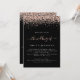 Invitación Glam Rosa Purpurina de oro Código QR Boda negro