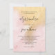 Esta brillante y elegante invitación a las bodas presenta un lujoso decorado de mármol rosa y dorado falso, con una tipografía de escritura a la moda en negro.