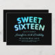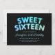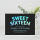 Elegante Dulce Dieciséis invitaciones de la fiesta de cumpleaños con globos turquesa y Verde azulado de cumpleaños y tipografía moderna.