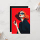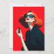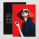 Un sorprendente ilustracion digital de una mujer glamurosa con el cabello rojo flotante, gafas de sol de gran tamaño y labios rojos vibrantes. Sostiene un lápiz de labios con confianza contra un fondo rojo audaz, exuberante encanto de Hollywood y elegancia atemporal. Perfecto para los amantes de la moda, los aficionados al arte retro o cualquier persona atraída por la moda, el arte pop moderno con un toque de sofisticación clásica.