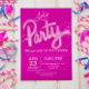 Invitación Glamuroso Rosa Caliente Let's Party Vertical
