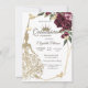 Invitación Glitter Dress,Butterfly Roses Burgundy Quinceañera