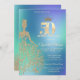 Invitación Glitter Dress, Diamonds Blue Ombre 50th Birthday