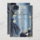 Invitación Glitter Dress,Roses,Butterflies Blue Metallic