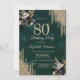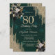 Invitación Glitter Drips Black Roses Green 80th Birthday