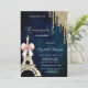 Invitación Glitter Drips,Eiffel Tower Bow Navy Blue