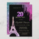 Invitación Glitter Drips,Eiffel Tower Diamonds 20th Birthday