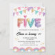 Invitación Glitter FIVE Girly Rainbow Sequin 5th Birthday