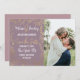 Elegante, chic y moderno falso brillo dorado impreso y gradiente de hoja floral de papel dorado y texto de pincel en un tono malva y lila púrpura, tarjeta de boda de Guardar la Fecha. Este diseño clásico y sofisticado es perfecto para la pareja trendy y elegante que se casa. Personalice con su propio mensaje en la parte delantera, así como una inicial de monograma personalizada en la parte posterior. Todo el diseño de impresión de foto.