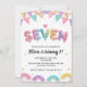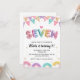 Invitación Glitter SEVEN Girly Rainbow Sequin 7th Birthday