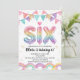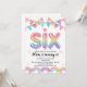 Invitación Glitter SIX Girly Rainbow Sequin 6th Birthday