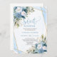 Invitación Glitzy Pastel Azul Flores de Oro Blanco Dulce 16