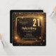 Dramatic black and faux gold tone sparkles and stars glitzy "21" 21st birthday party design.