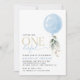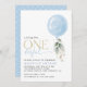 Invitación Globo azul, eucalipto, vegetación, primer cumpleañ