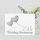 Invitación moderna de aniversario de boda de plata con globos con corazón de plata sobre fondo blanco.