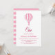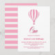 Invitación Globo de aire caliente rosado Fiesta de cumpleaños