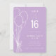 Hacerle inolvidable su cumpleaños con esta lavanda hecha a mano y la invitación de cumpleaños blanca. Con ilustraciones de globos juguetones y tipografía audaz en una moda, diseño moderno, esta invitación elegante es perfecta para celebrar cualquier hito, ya sea que estén cumpliendo 16, 18, 21, 30, 40, 50 o más! Esta invitación de personalizable completa le permite personalizar el nombre, la edad, los detalles del fiesta y la información de RSVP. La paleta de colores de moda agrega un toque divertido y femenino que es ideal para chicas, adolescentes y mujeres por igual —ya sea que estés organizando un brunch, fiesta de cumpleaños o celebración de la cena.