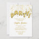 Invitación Globo de fiesta con lámina dorada y confeti de cum