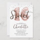 Invitación Globo de Oro Rosa Brillo Plateado Fiesta Dulces 16