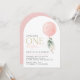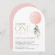 Invitación Globo rosa, eucalipto, vegetación, primer cumpleañ