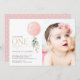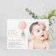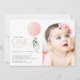 Invitación Globo rosa, eucalipto, vegetación, primer cumpleañ