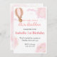 Hermosa invitación de cumpleaños primera globo aerostático rosa y dorado con nubes. La invitación perfecta para la fiesta de cumpleaños del globo aerostático de su pequeña niña.