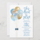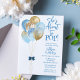Prepárate para celebrar la próxima llegada de un pequeño paquete de alegría con nuestra encantadora invitación Baby Shower Blue & Gold "¡Está a punto de salir"! Esta invitación es una mezcla encantadora de elegancia y emoción, con un impresionante globo translúcido en tonos azules y dorados. El delicado juego de globos azules y dorados es el tono perfecto para una celebración llena de anticipación. El pie de foto añade un toque de diversión, dejando claro que el fiesta se trata de la llegada inminente del pequeño. Esta invitación es una manera elegante y encantadora de invitar a sus seres queridos a compartir la alegría de esta ocasión especial. ¡Pida ahora que se prepare el escenario para una inolvidable y alegre ducha de bebé!