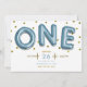 Invitación Globos Azules Confeti Dorado Cumpleaños 1 Uno