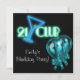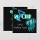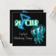 Invitación a la fiesta de cumpleaños 21 de chicas con letrero de neón azul teal y verde lima y globos negros