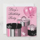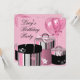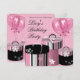 Puntos polka rosados cajas de regalo de boutique rosa y negra globos invitación de fiesta de cumpleaños para niñas cualquier número.