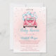 Única invitación a la ducha de bebé chica que conduce por carretera con un auto de color rosa con globos.