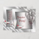 Invitación elegante de cócteles y globos plateados y rojos para una fiesta de cumpleaños sorpresa. Esta invitación de cumpleaños sorpresa roja se personaliza fácilmente para su evento agregando los detalles del evento, el estilo de fuente, el tamaño y el color de la letra y la redacción.